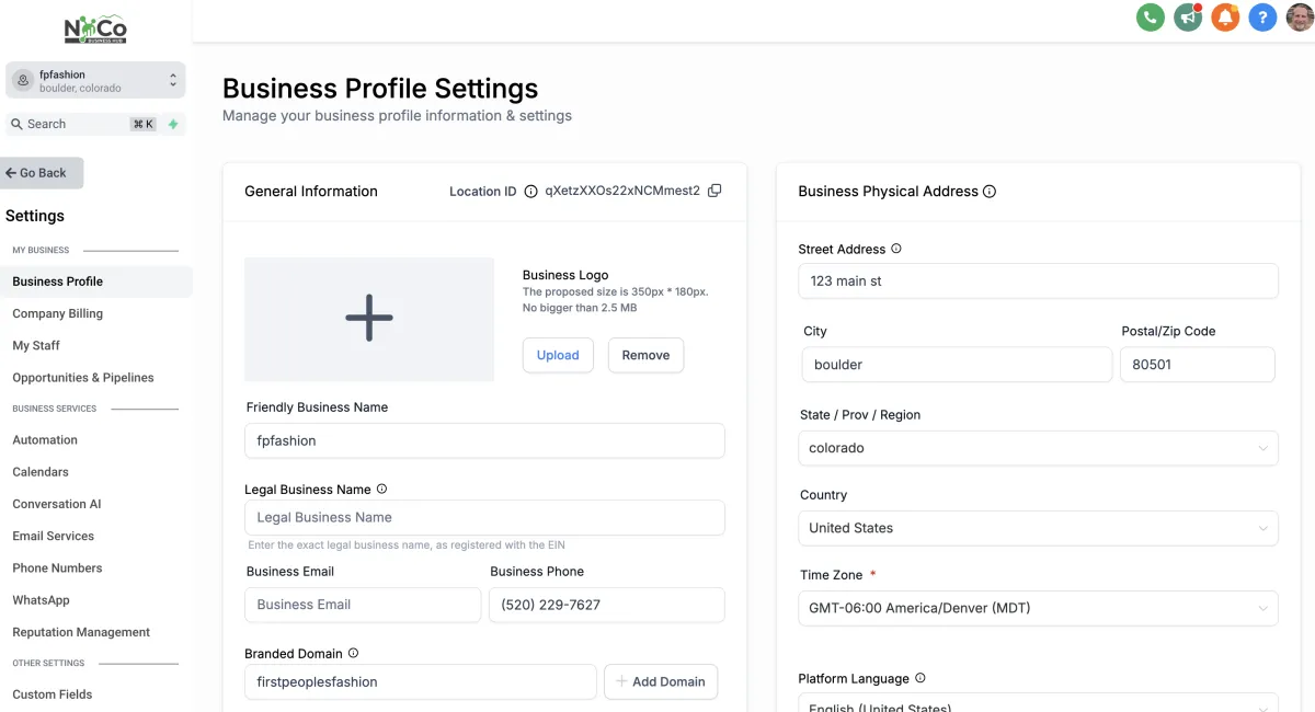You will land on the Business Profile tab, and we want to get that filled out as completely as possible.